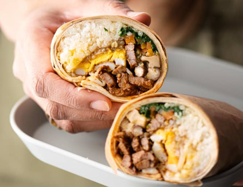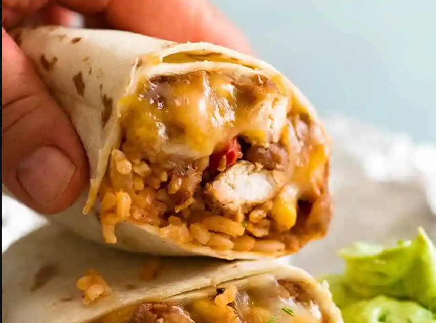 A burrito is essentially a flour tortilla filled with various ingredients such as meat (often beef or chicken), rice, beans, cheese, and vegetables. These ingredients can be cooked either separately or together to create the filling for the burrito. The tortilla is then rolled up around the filling and sealed by folding it over. This makes a large, hand-held meal that is easy to eat on the go.
