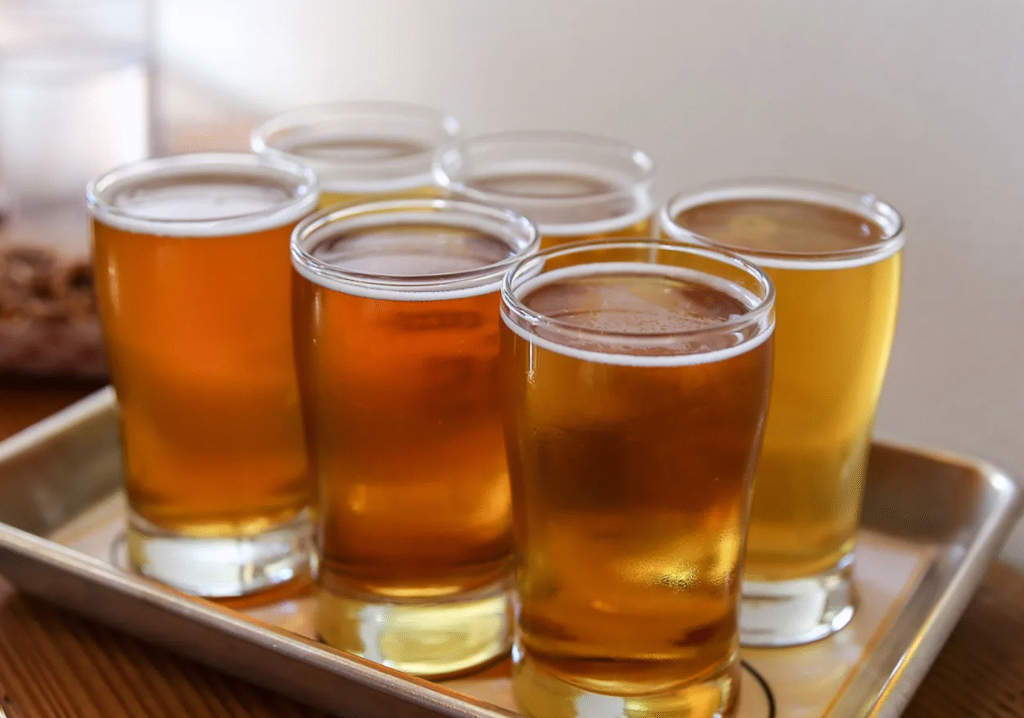 Beer is an alcoholic beverage made from fermented grains such as barley, wheat, and rye. It can vary greatly in terms of color, texture, strength and flavor depending on the ingredients used during brewing as well as the process followed. Beers can range from light lagers to heavier ales with a variety of unique tastes and aromas.