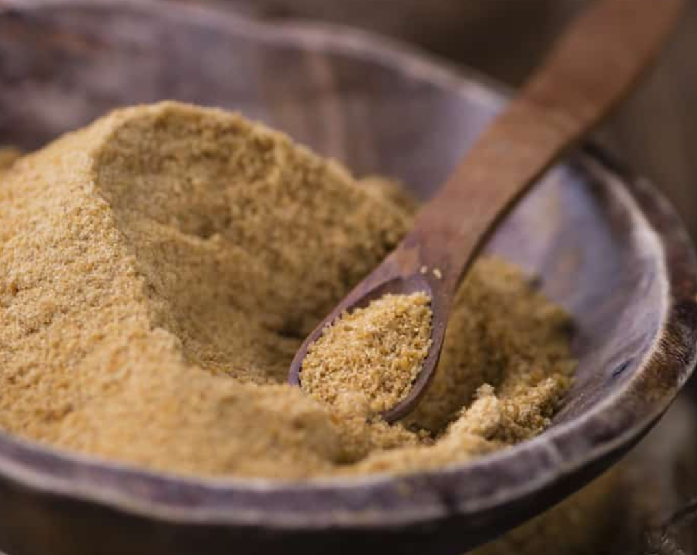Palm sugar is a traditional, unrefined sugar made from the sap of certain palms such as the toddy palm or palmyra palm. It has a light brown color and granular texture that resembles brown sugar, with slightly more moisture. Palm sugar has a unique flavor profile that’s sweet but not cloying, and it contains minerals like iron, zinc, potassium, and magnesium which are beneficial to health.
