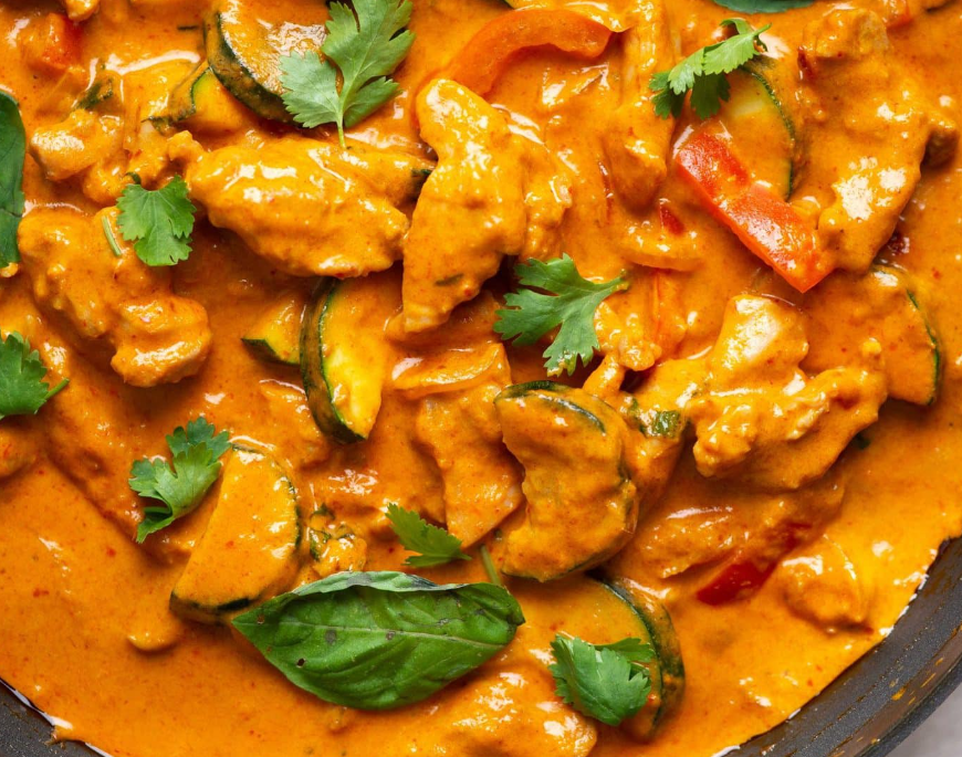 Red curry is a type of traditional Thai dish that features a bold and sweet flavor. It’s made with a paste of red chilies, which gives it its distinct color and intense spiciness. The paste also contains garlic, ginger, lemongrass, coriander seeds, cumin, shallots and other spices for added depth. Red curry is usually served over steamed rice or noodles and can be accompanied by an array of vegetables such as bamboo shoots, eggplant, bell peppers and mushrooms.
