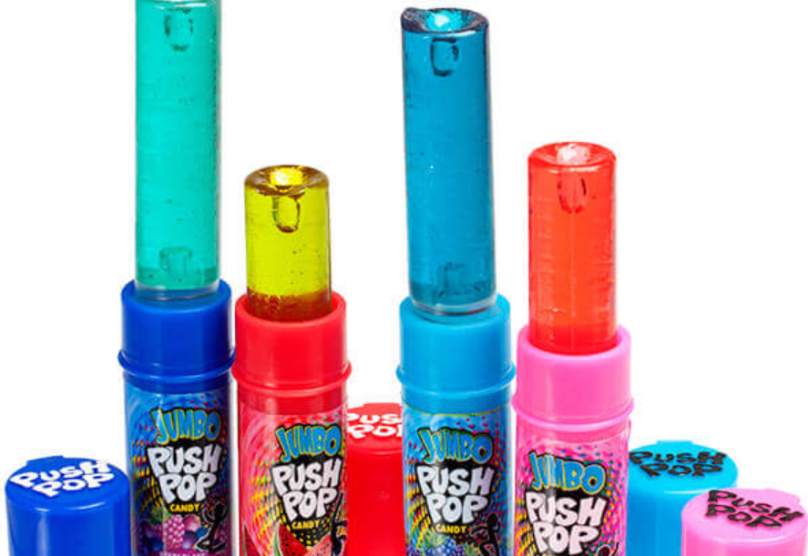 These are basically lollipops on a stick, but you can push the candy up from the bottom as you eat it. They come in a variety of flavors, but the classic is strawberry.