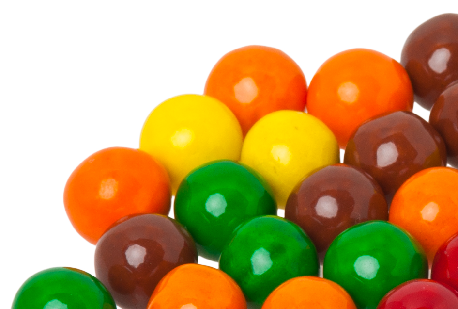 A rainbow of chewy, tangy fruit-flavored candies with a hard, outer shell.
