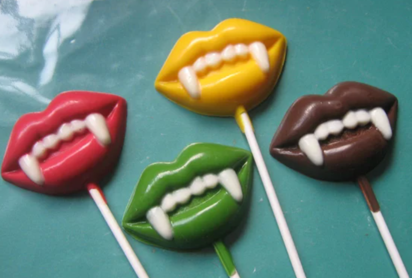 These spooky lollipops come in vanilla and cherry flavors, complete with realistic vampire fangs molded into them for extra Halloween fun!