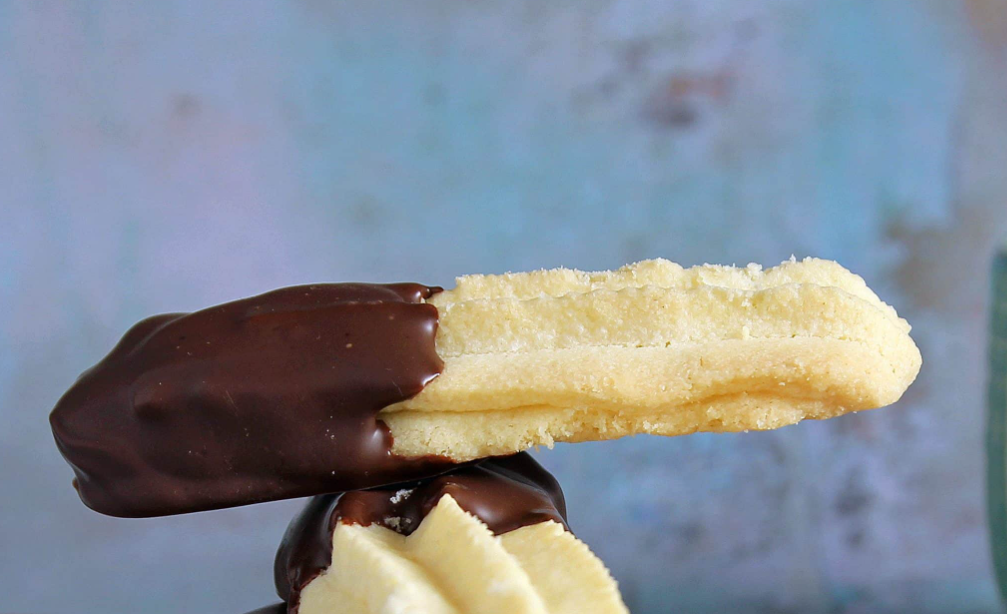 These crispy biscuit fingers are coated with a layer of rich dark chocolate for a delicious treat.