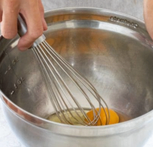 - Dip the crab flesh in the flour, then the egg, and finally back into the flour mixture.