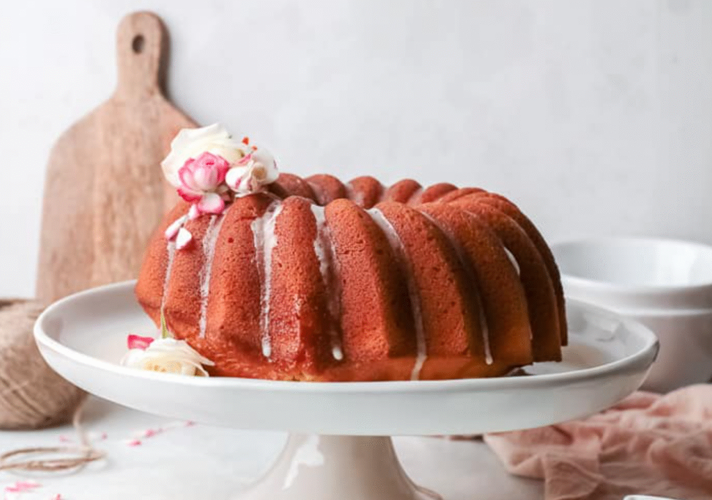 Tres leches bundt cake is a Latin American dessert cake that’s made with 3 types of milk – evaporated milk, sweetened condensed milk, and whole milk. The cake is often soaked in the milk mixture, which makes it extremely moist, and then decorated with whipped cream and fruits.